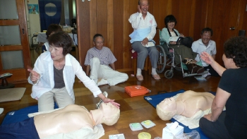 高齢の森さんは92歳です。若い人のじゃまにならないかと案じて、それでも救命の講習は最後まで参加、質問までしっかりして、いつものように支援NETの空気を創ってくださっていました。