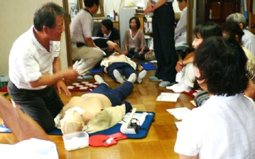 これは7年も続けてきて、今まで何をしてきたのかと主宰者たる私に問いかえしてみなければなりません。『できることで参加』というスタイルが、指導される消防署さんはもちろん、支援ネットの私たちですら意識づけないと素通りしてしまい、仲間はずれとまではいかないにしても人を救う一員としての働きから除外してしまうことになりました。支援NETのこの場に高齢者や障害者や子どもが、ただ参加して観ているだけで終わることがないように来年は心したいと念じています。