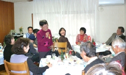 クリスマス会に参加させていただくのは2回目になります。企画や準備、料理等お手伝いせず、上げ膳据え膳で厚かましく座っておりました。〝若い頃の写真〟の企画はお笑いを呼び楽しかったです。それぞれに生きた若い20歳代のあの頃はどこへ行ったのかと懐かしい思いと、その頃全く知らなかった皆様と出会い、今ここにいる不思議な御縁を感じます。また、同じテーブルになった方とゆっくりお話ができて知らなかった一面を知ることもできました。これからまた同じように月日が流れ、その時も笑えるようなかかわりが続いていたら素晴らしいですね。人は一人では生きてゆけませんのに現在の社会は地域・ひととのかかわりが希薄になっています。これから私たちは自発的にひととのかかわりを築いていってこそ、人間らしい生き方、老い方ができると思います。