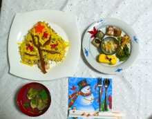 例年どおりに料理担当の3人の彼女たちは台所でクリスマス料理の創作に忙しく動いてくれていました。最初から最後までの段取りや写真取りで余裕のない私ですが、台所担当の彼女たちはおいしい料理を参加の皆さんに楽しんでもらうことに喜びを感じてくれています。