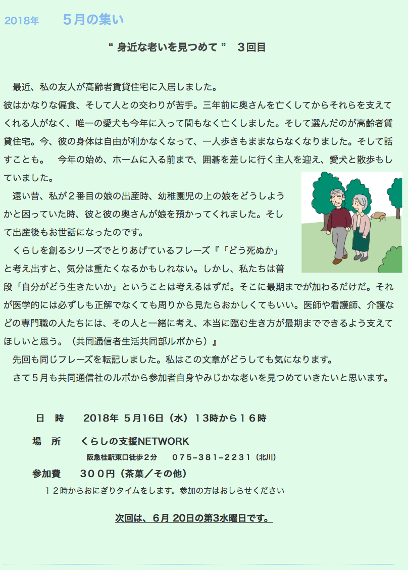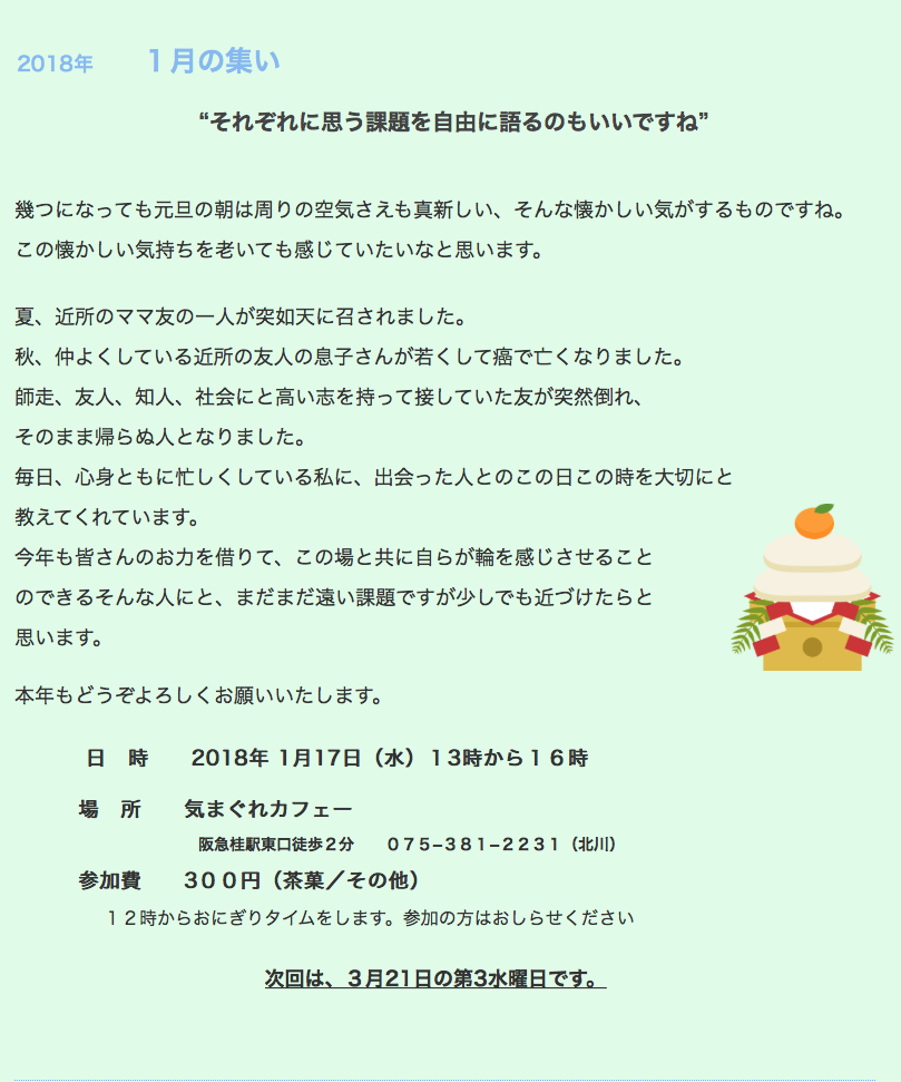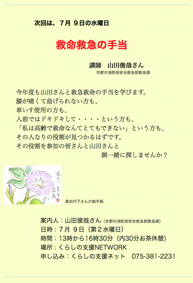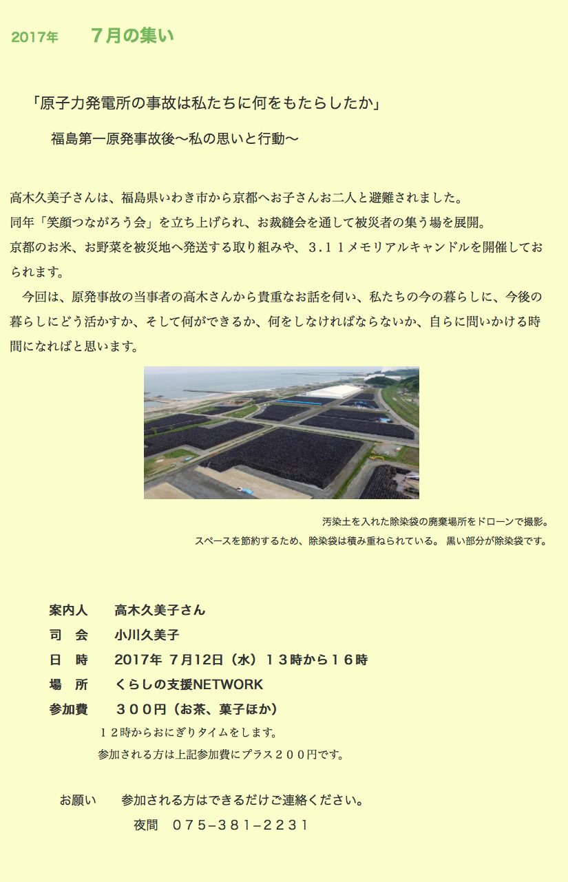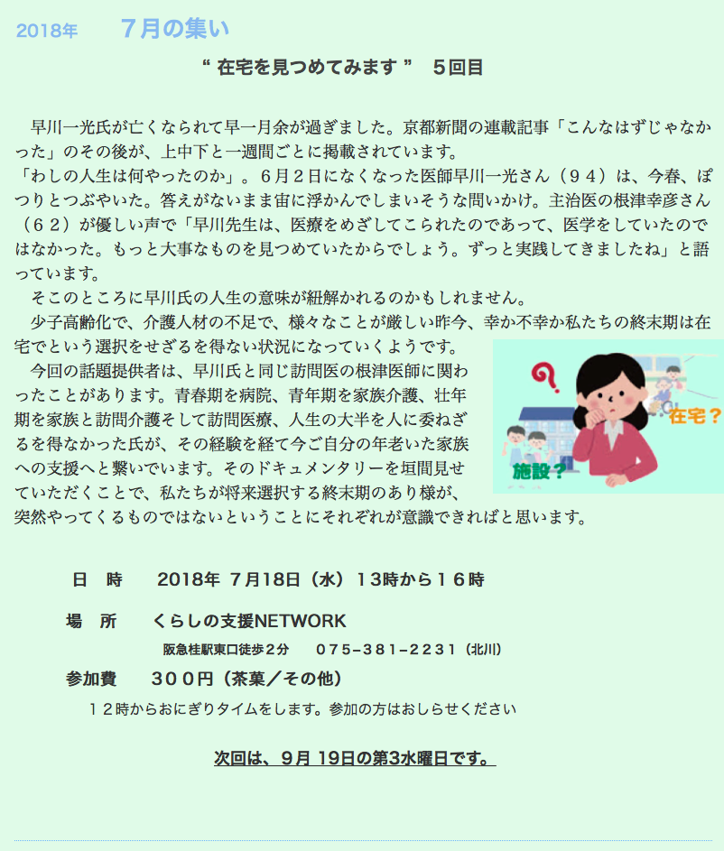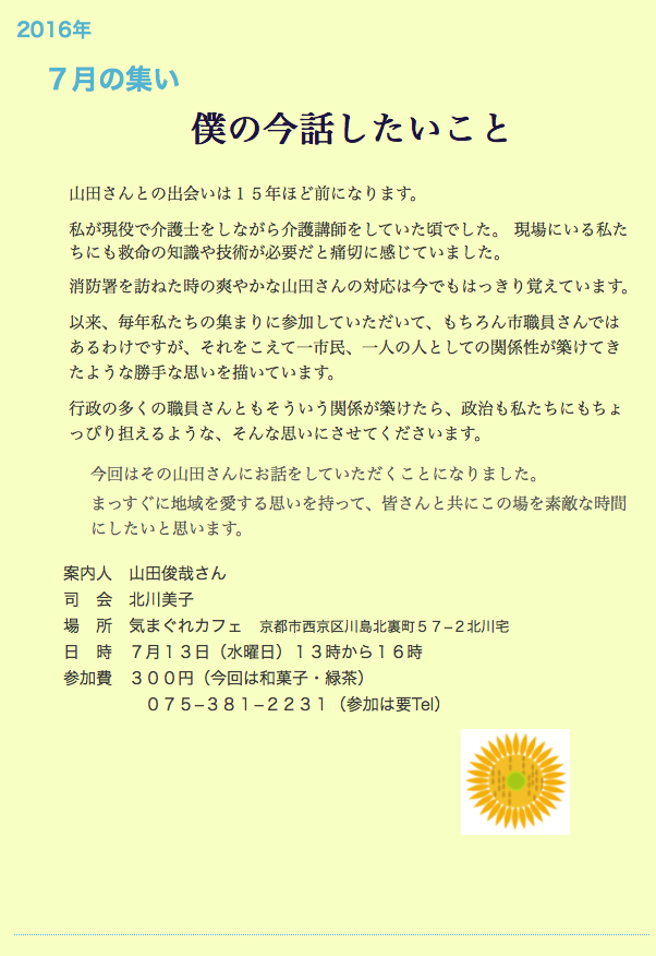 7月の集まりは、7月 17日の第3水曜日です。