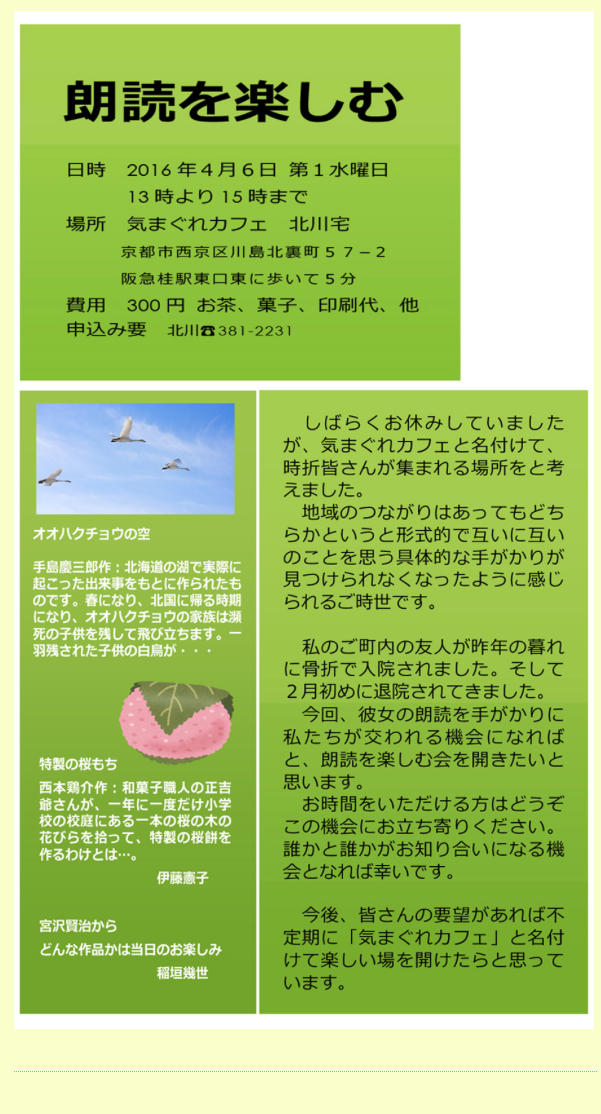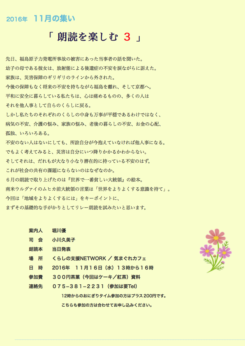 参加費 300円(資料、お茶、お菓子など)