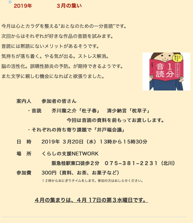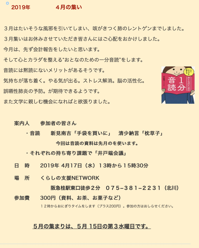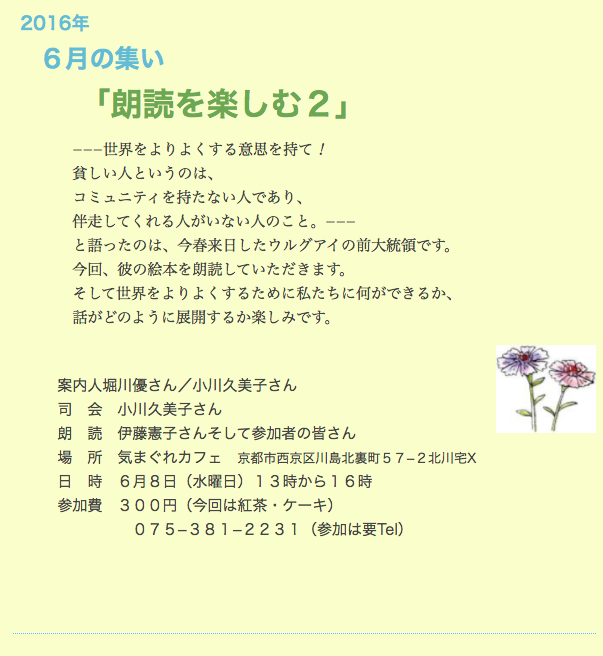 6月も参加者の選んだそれぞれの音読から日頃の課題が引き出されたらと思います。