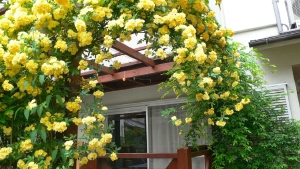 今年の年賀状には黄色いモッコウバラを額に仕立てました。ここ数年の私の賀状は、いまやライフワークとなった支援NETが絵になっています。